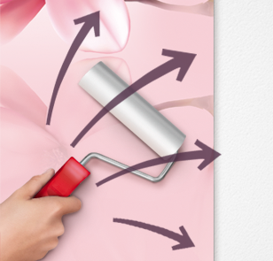 Wichtig: Tapetax-Fototapeten bestehen aus Vliestapeten. Beim Anbringen dehnen sie sich gut, sodass sich das Muster leicht anpassen lässt. Beim Ablösen kann sich das Vlies jedoch verziehen, wodurch das Muster nicht mehr perfekt passt. Glätten Sie die Nähte mit einer Walze – nicht reiben! Dies könnte die Lackschicht beschädigen.